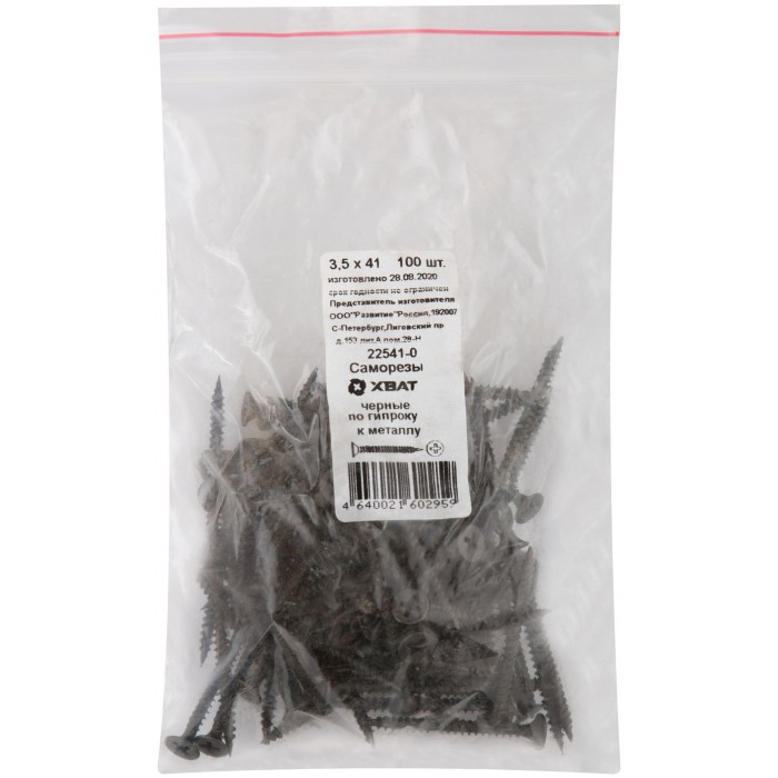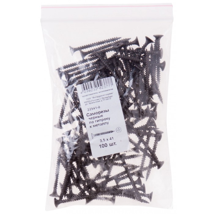 Саморезы черные по гипроку к металлу 3,5 х 41 100 шт Фасовка (22541-0)