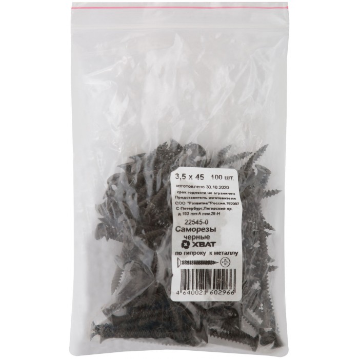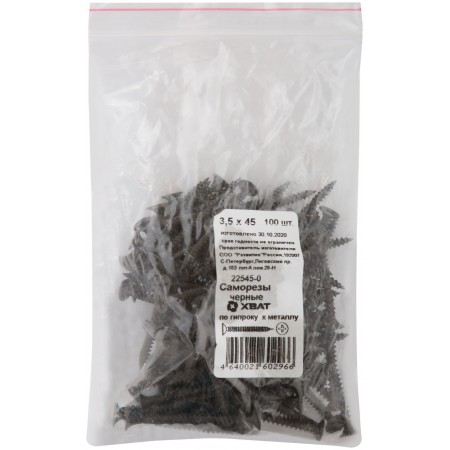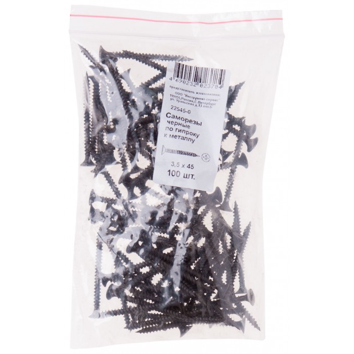 Саморезы черные по гипроку к металлу 3,5 х 45 100 шт Фасовка (22545-0)