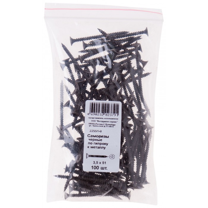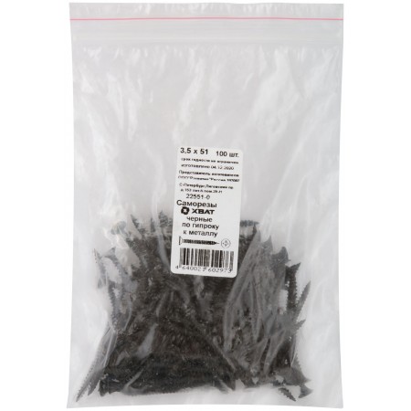 Саморезы черные по гипроку к металлу 3,5 х 51 100 шт Фасовка (22551-0)
