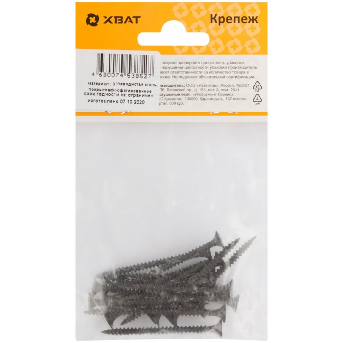 Фосфатированный. Предназначен для крепления материалов к основанию без предварительного сверления. Основная область применения – крепление листов гипсокартона к профилям из листового металла толщиной до 0,9 мм. Частый шаг резьбы.