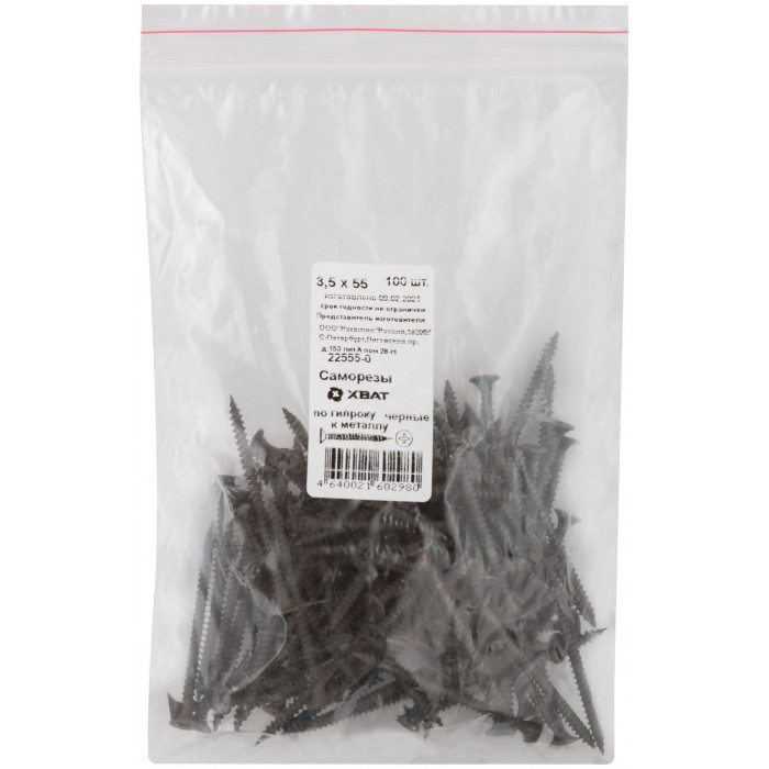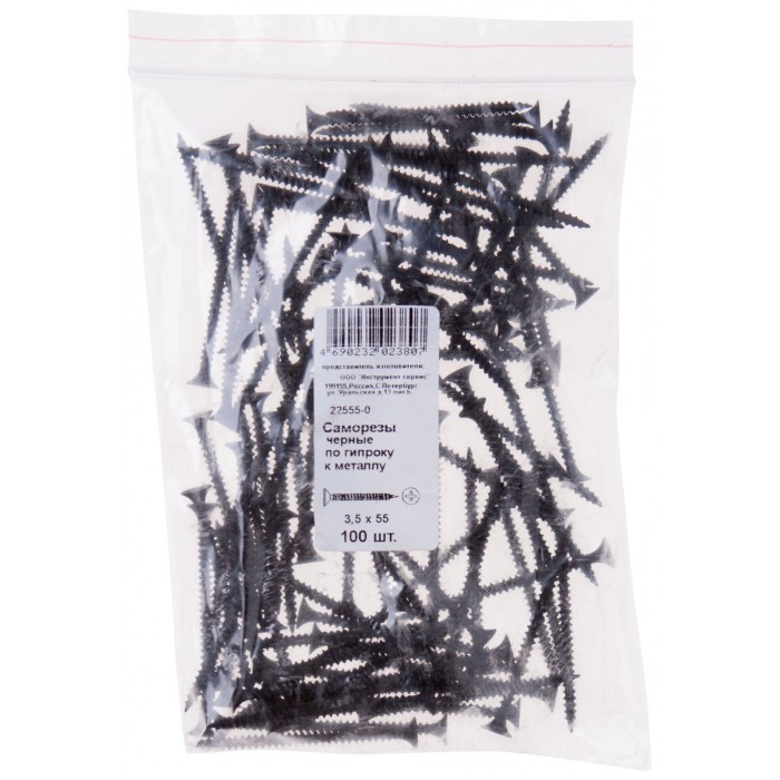 Саморезы черные по гипроку к металлу 3,5 х 55 100 шт Фасовка (22555-0)