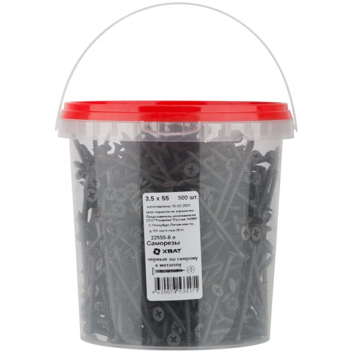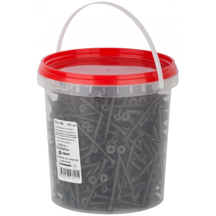 Саморезы черные по гипроку к металлу 3,5 х 55 (фасовка Ведро 500 шт) (22555-6В)