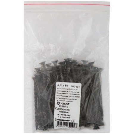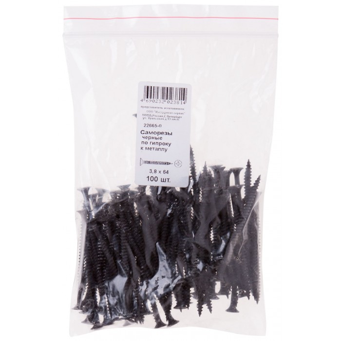Саморезы черные по гипроку к металлу 3,8 х 65 100 шт Фасовка (22665-0)