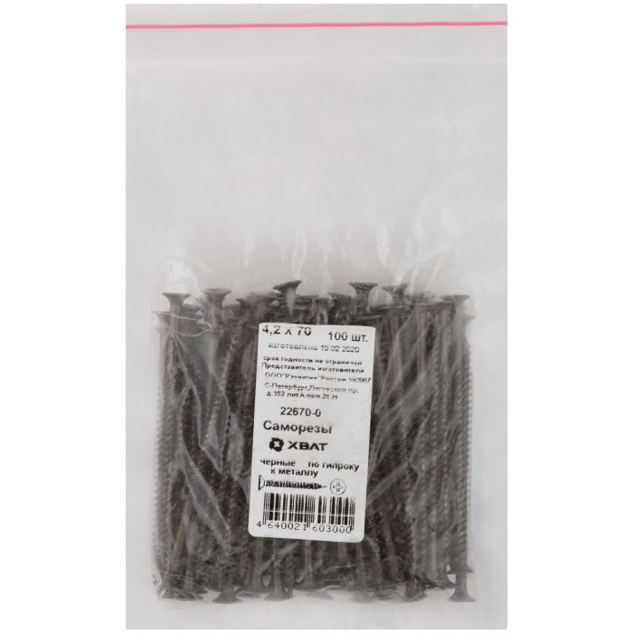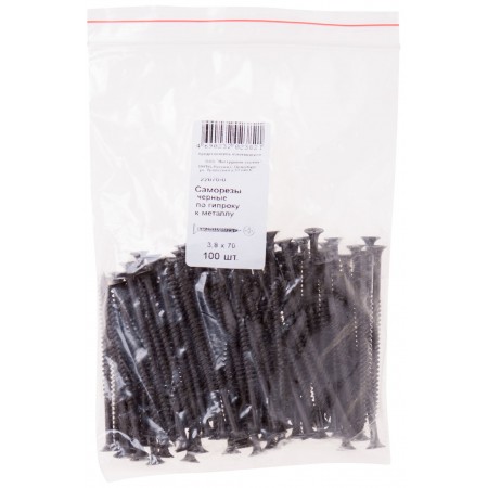 Саморезы черные по гипроку к металлу 4,2 х 70 100 шт (фасовка) (22670-0)