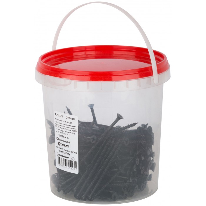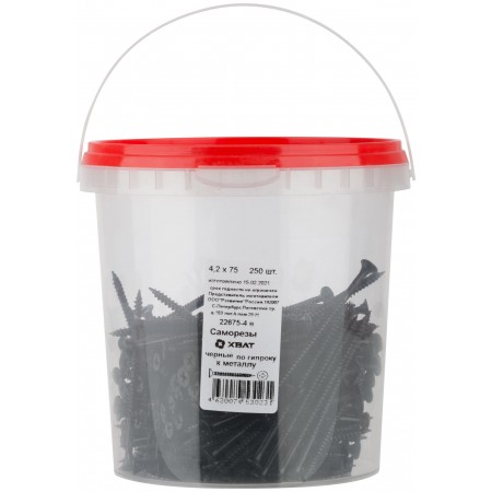 Саморезы черные по гипроку к металлу 4,2 х 75 (фасовка Ведро 250 шт) (22675-4В)