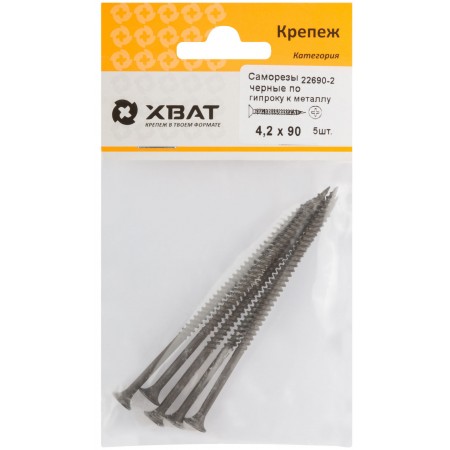 Саморезы черные по гипроку к металлу 4,2 х 90 (фасовка 5 шт) (22690-2)
