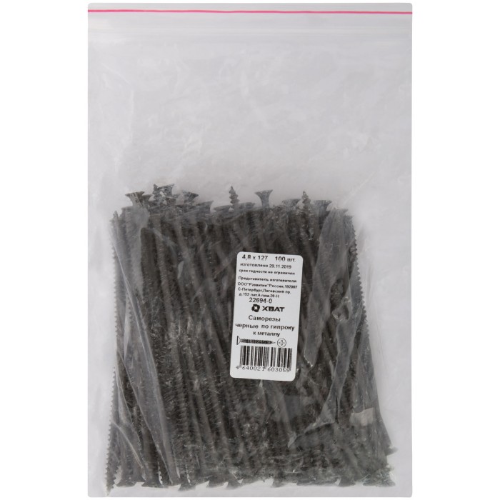 Саморезы черные по гипроку к металлу 4.8 х 127 100 шт Фасовка (22694-0)