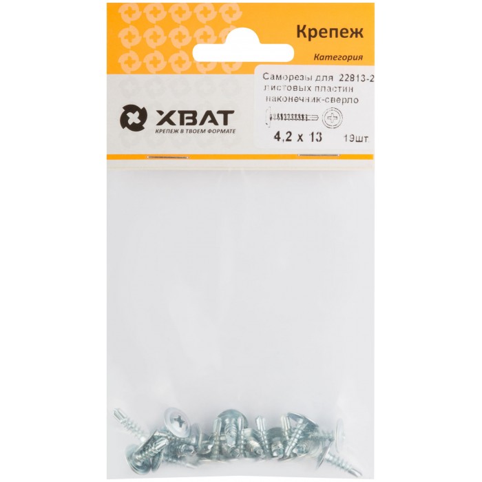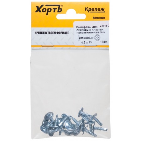 Саморезы для листовых пластин, наконечник-сверло 4,2 х 13 (фасовка 19 шт) (22813-2)