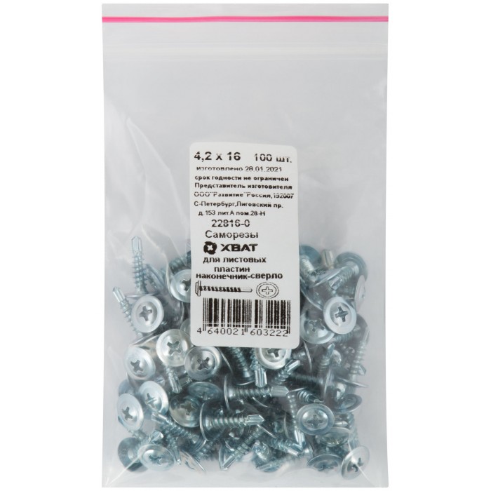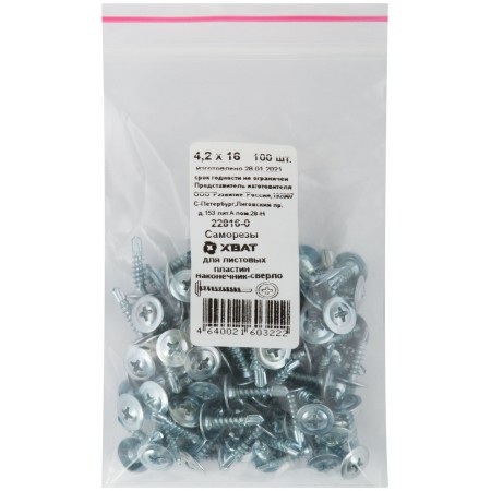 Саморезы для листовых пластин, наконечник-сверло 4,2 х 16 100 шт Фасовка (22816-0)