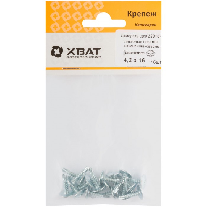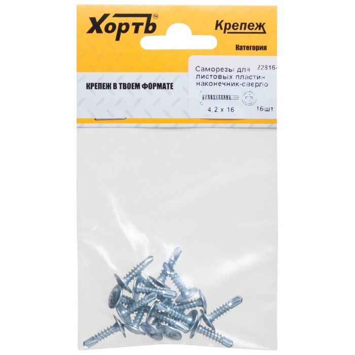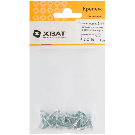 Саморезы для листовых пластин, наконечник-сверло 4,2 х 16 (фасовка 16 шт) (22816-2)