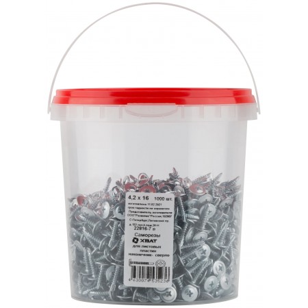 Саморезы для листовых пластин, наконечник-сверло 4,2 х 16 (фасовка Ведро 1000 шт) (22816-7В)