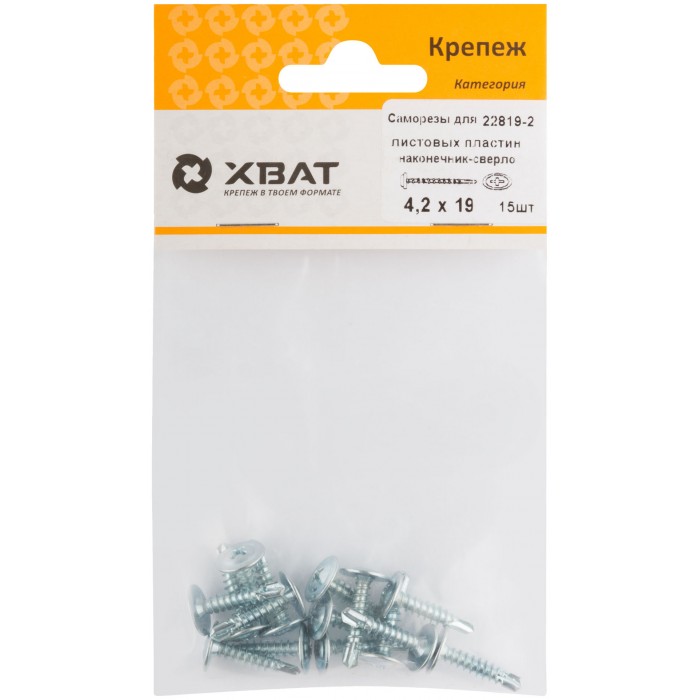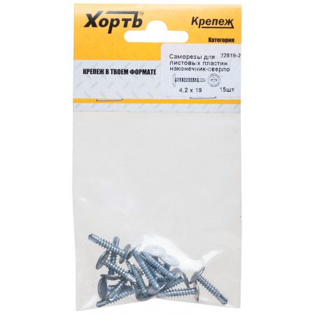 Саморезы для листовых пластин, наконечник-сверло 4,2 х 19 (фасовка 15 шт) (22819-2)