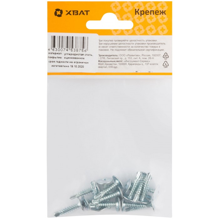 С пресс-шайбой, оцинкованный, полусферическая головка PH2. Частый шаг резьбы. Подходит для крепления как к деревянным конструкциям, так и к металлу. При толщине металла до 2 мм - не требует предварительного сверления.