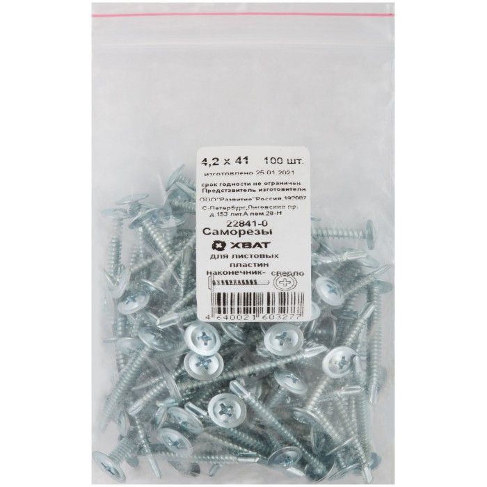 Саморезы для листовых пластин, наконечник-сверло 4,2 х 41 100 шт Фасовка (22841-0)