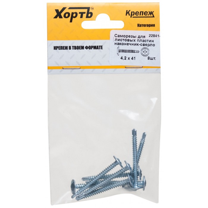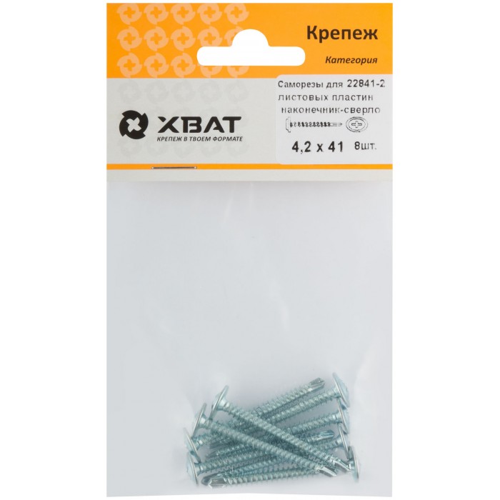 Саморезы для листовых пластин, наконечник-сверло 4,2 х 41 (фасовка 8 шт) (22841-2)