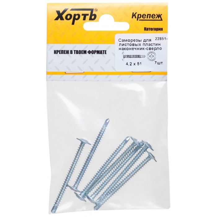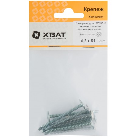Саморезы для листовых пластин, наконечник-сверло 4,2 х 51 (фасовка 7 шт) (22851-2)