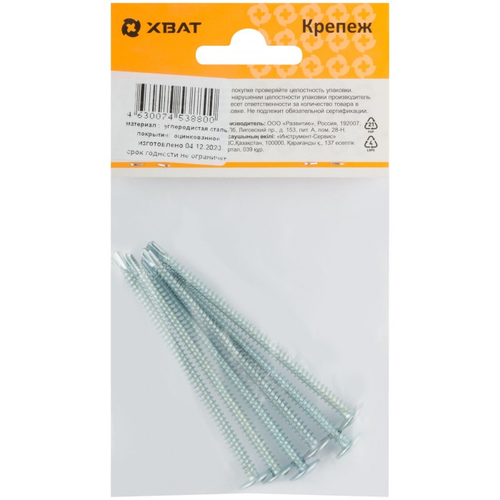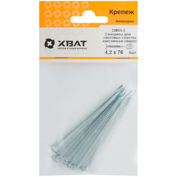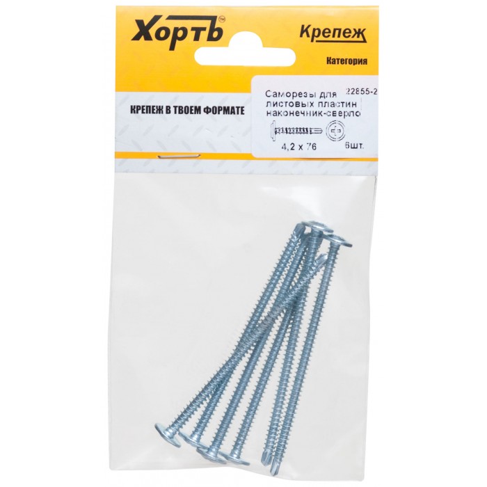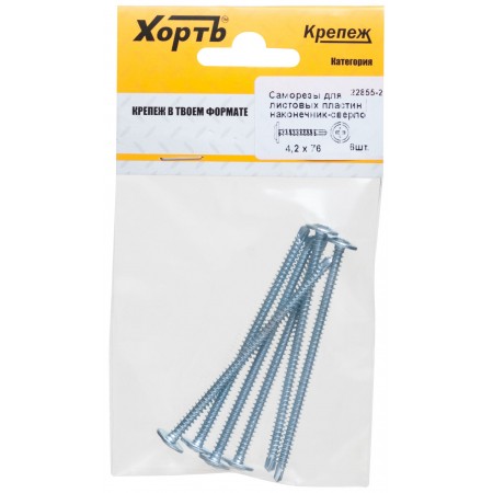 Саморезы для листовых пластин, наконечник-сверло 4,2 х 76 (фасовка 6 шт) (22855-2)