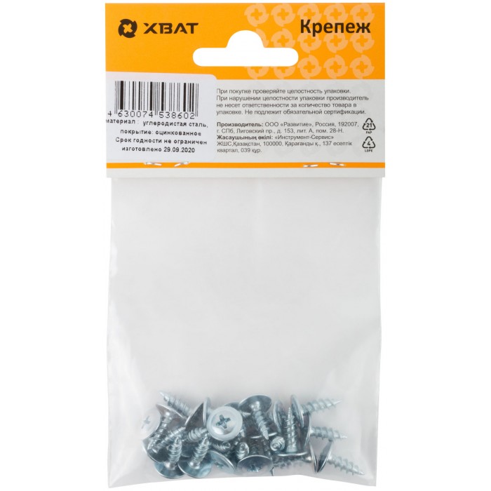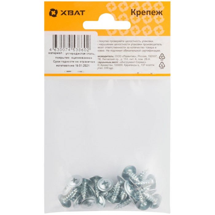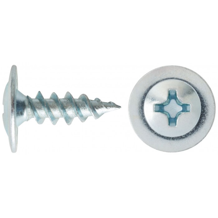 С пресс-шайбой, оцинкованный, полусферическая головка PH2. Частый шаг резьбы. Подходит для крепления как к деревянным конструкциям, так и к металлу. При толщине металла до 0,9 мм - не требует предварительного сверления.