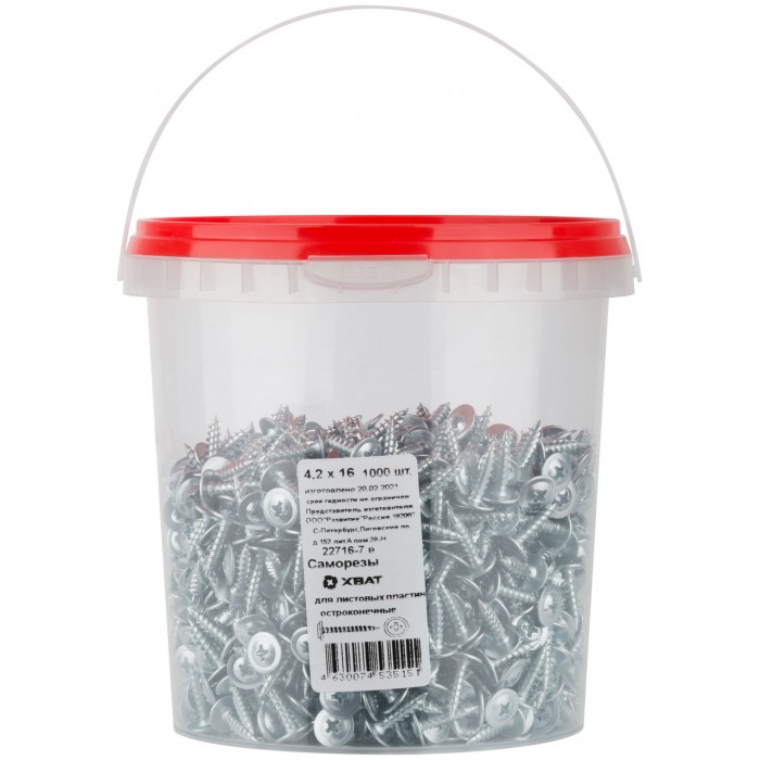 Саморезы для листовых пластин, остроконечные 4,2 х 16 (фасовка Ведро 1000 шт) (22716-7В)