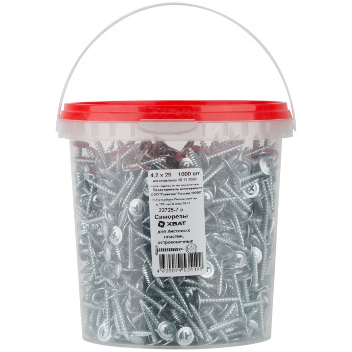 Саморезы для листовых пластин, остроконечные 4,2 х 25 (фасовка Ведро 1000 шт) (22725-7В)