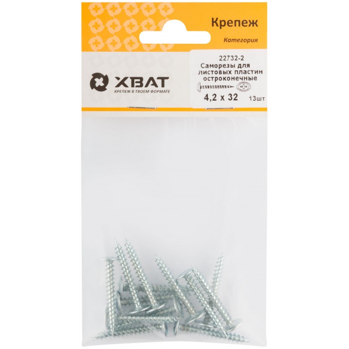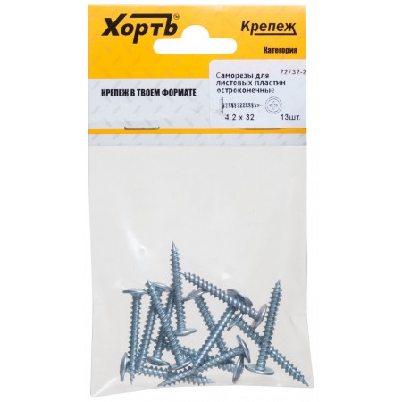 Саморезы для листовых пластин, остроконечные 4,2 х 32 (фасовка 13 шт) (22732-2)