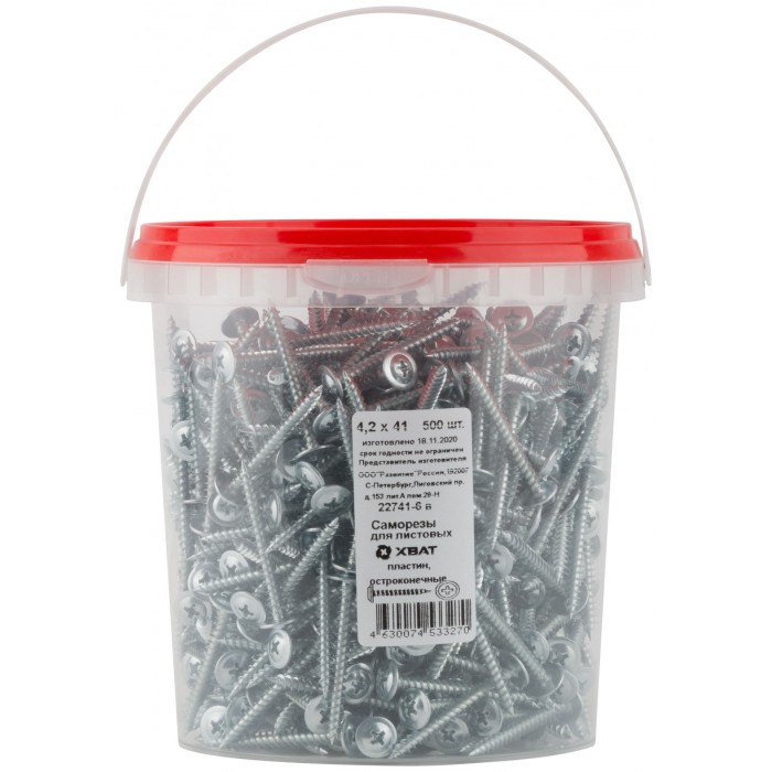 Саморезы для листовых пластин, остроконечные 4,2 х 41 (фасовка Ведро 500 шт) (22741-6В)