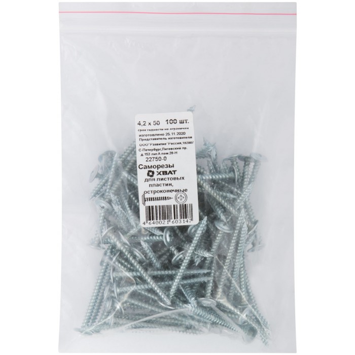 Саморезы для листовых пластин, остроконечные 4,2 х 50 100 шт Фасовка (22750-0)