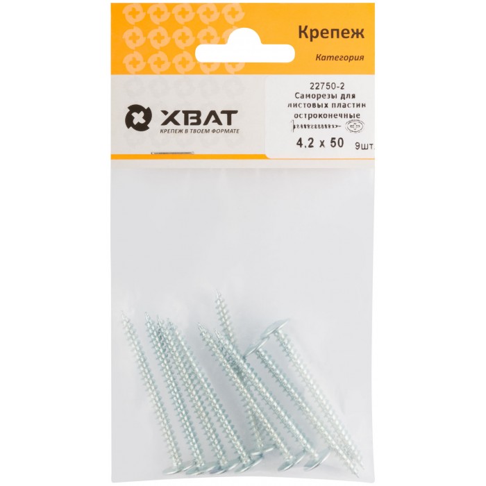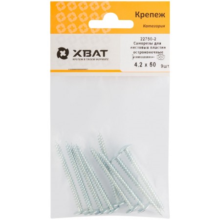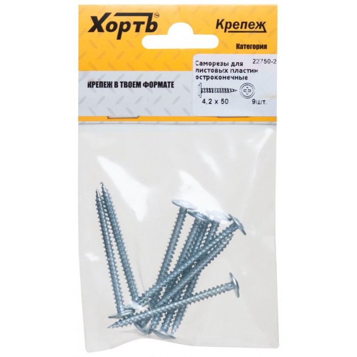 Саморезы для листовых пластин, остроконечные 4,2 х 50 (фасовка 9 шт) (22750-2)