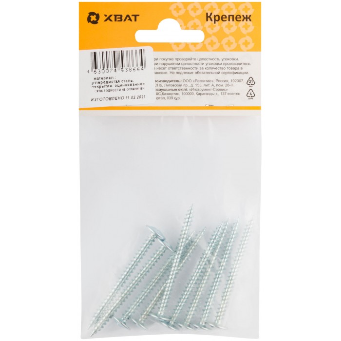 С пресс-шайбой, оцинкованный, полусферическая головка PH2. Частый шаг резьбы. Подходит для крепления как к деревянным конструкциям, так и к металлу. При толщине металла до 0,9 мм - не требует предварительного сверления.