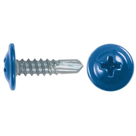 С пресс-шайбой. Оцинкованный крашеный. Полусферическая головка РН2. Предназначен для крепления к металлу. Имеет резьбу с частым шагом и сверловой наконечник со способностью просверливания до 2 мм.