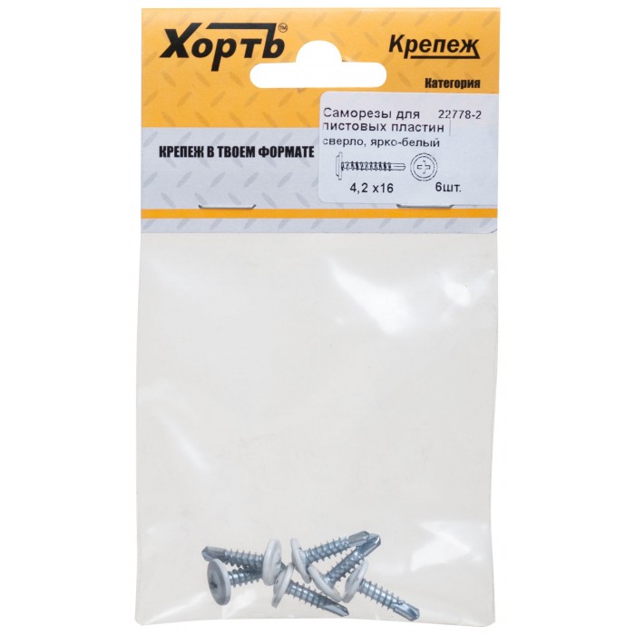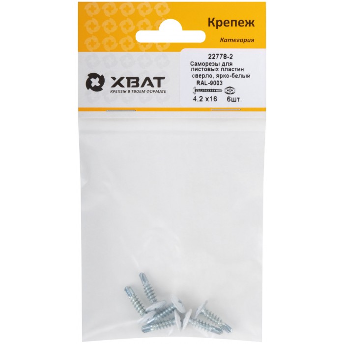 Саморезы для листовых пластин, сверло 4,2 х 16 ярко-белый, RAL 9003 (фасовка 6 шт) (22778-2)