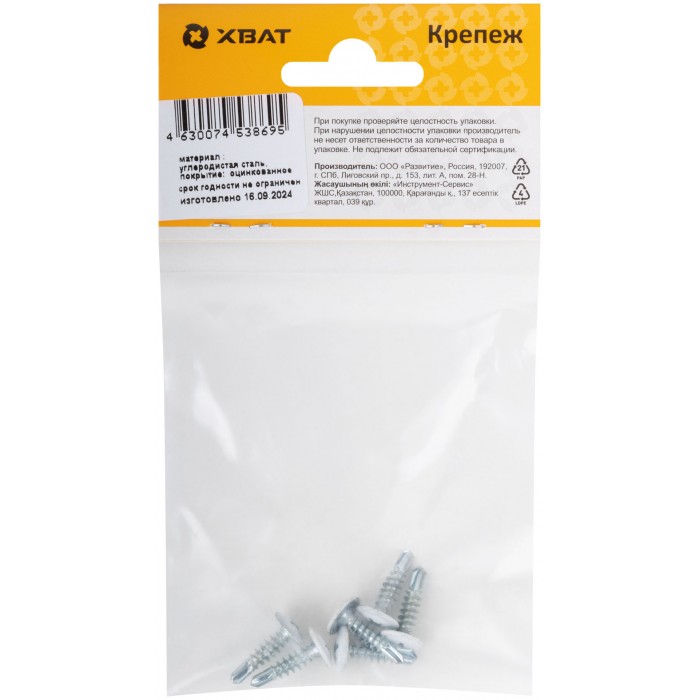 С пресс-шайбой. Оцинкованный крашеный. Полусферическая головка РН2. Предназначен для крепления к металлу. Имеет резьбу с частым шагом и сверловой наконечник со способностью просверливания до 2 мм. (6 шт.)