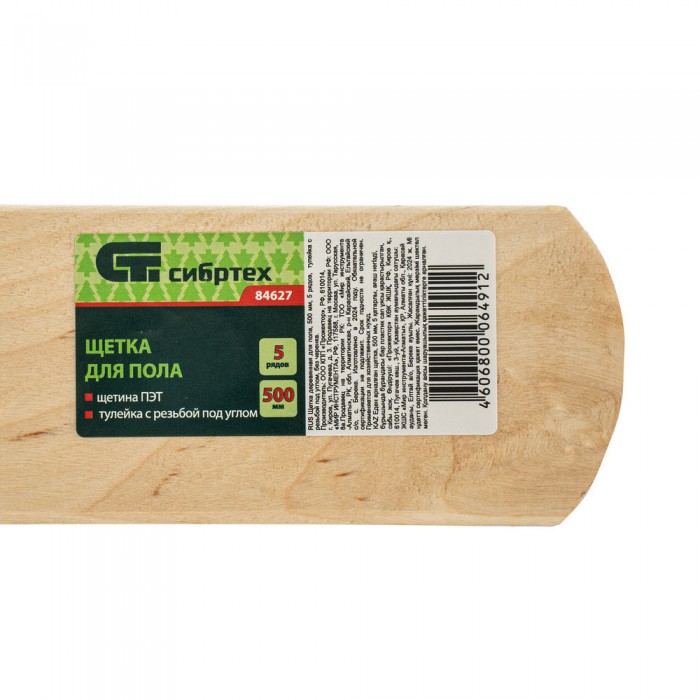 Щетка деревянная для пола, 500 мм, пятирядная, тулейка с резьбой под углом, без черенка Сибртех (84627)