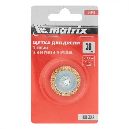 Щетка для дрели, 30 мм, плоская со шпилькой, латунированная витая проволока Matrix (74440)