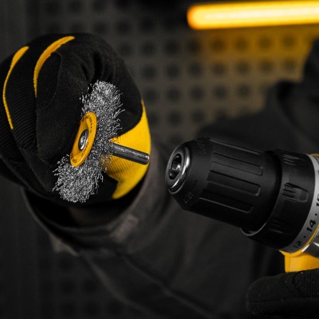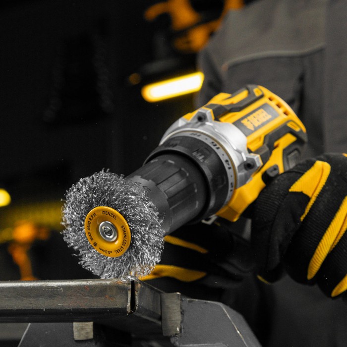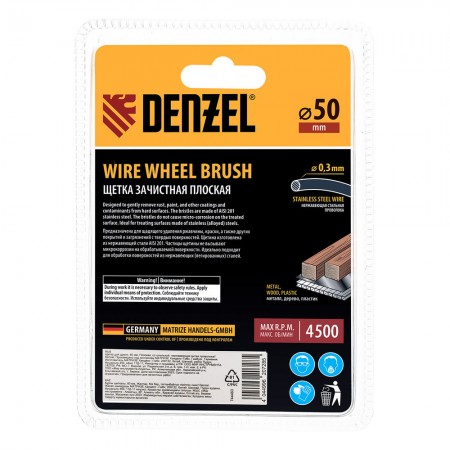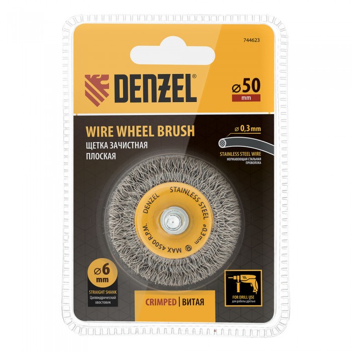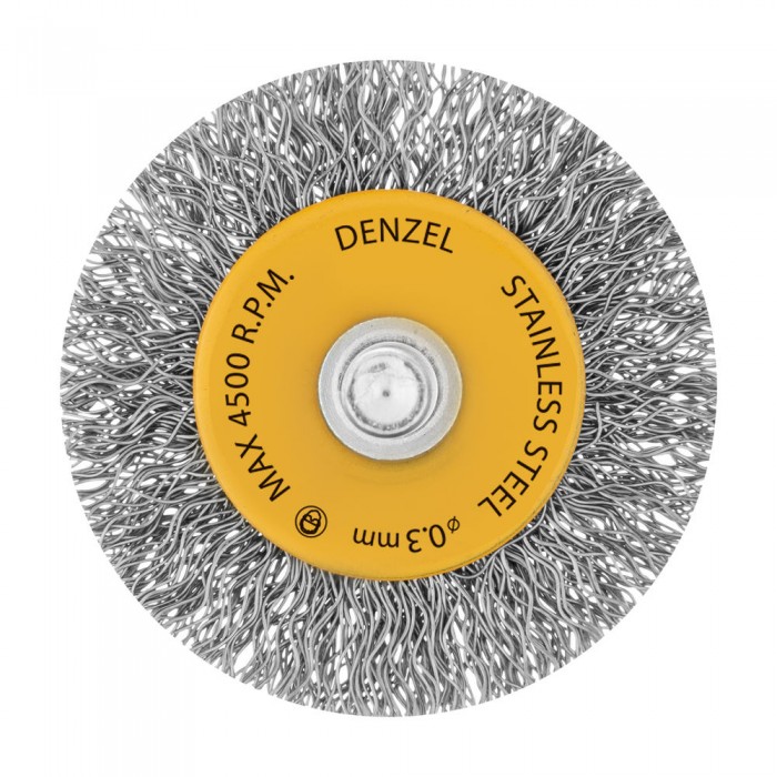 Щетка для дрели, 50 мм, Плоская, со шпилькой, нержавеющая витая проволока Denzel (744623)