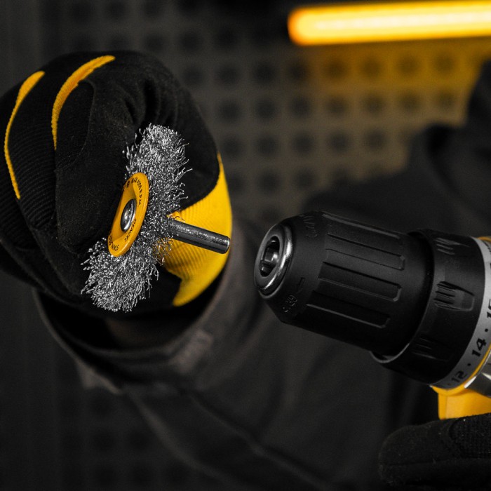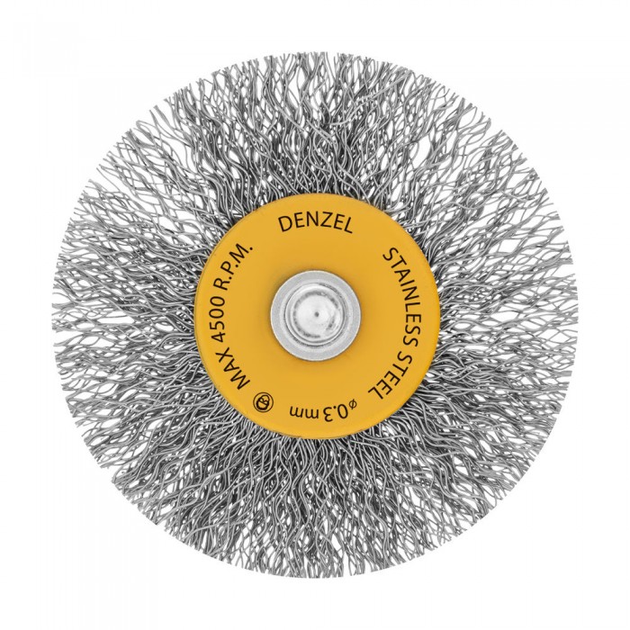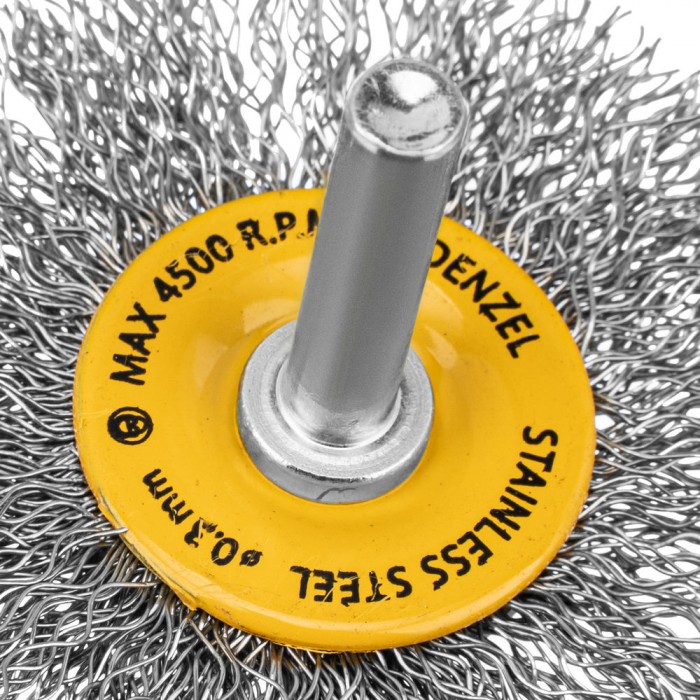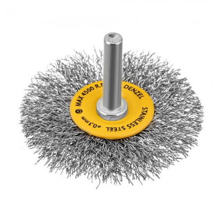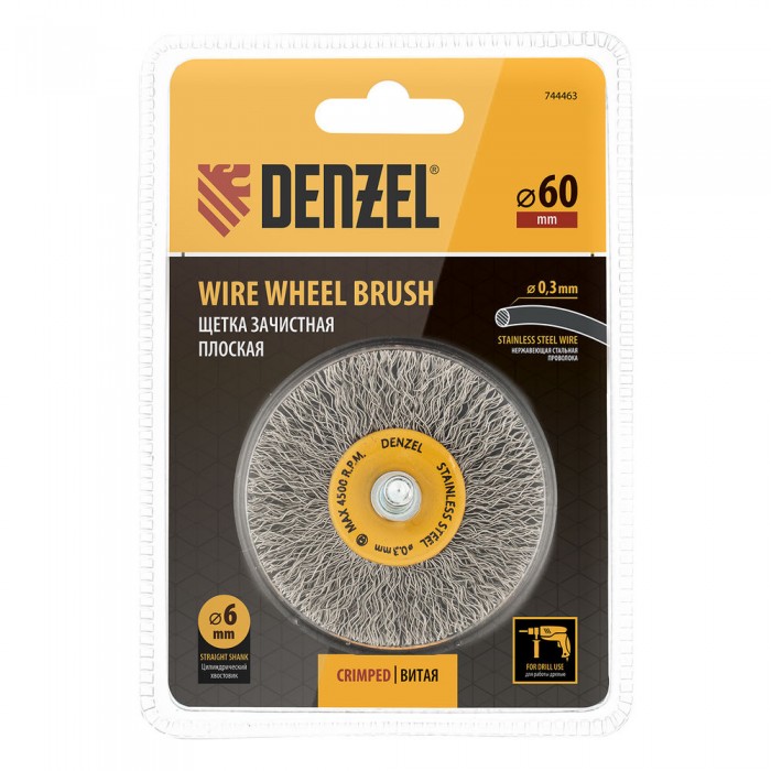 Щетка для дрели, 60 мм, Плоская, со шпилькой, нержавеющая витая проволока Denzel (744463)