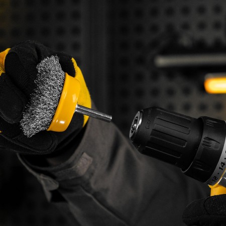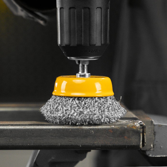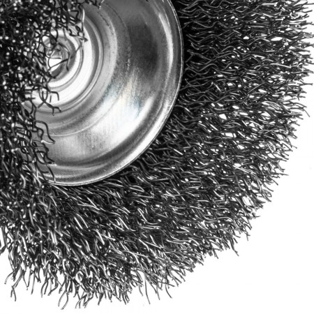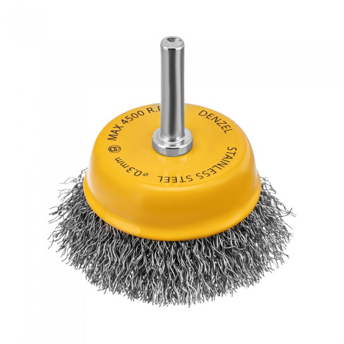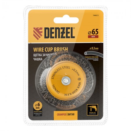 Щетка для дрели, 65 мм, Чашка, со шпилькой , нержавеющая витая проволока Denzel (744613)