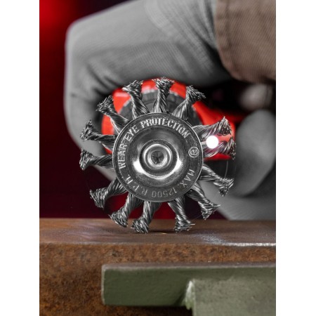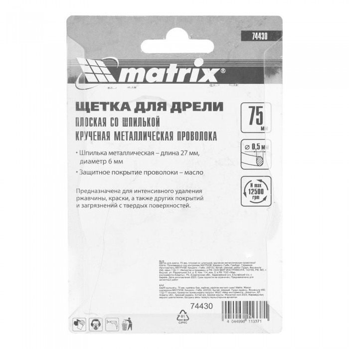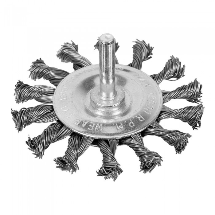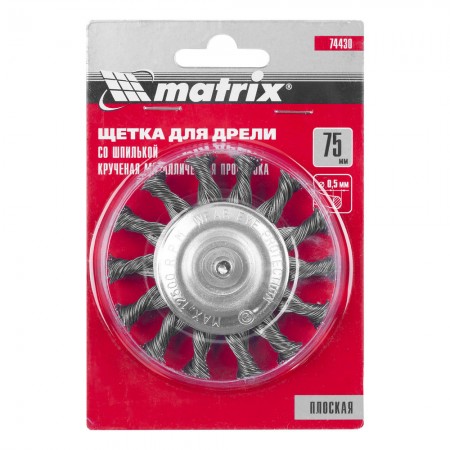 Щетка для дрели, 75 мм, плоская со шпилькой, крученая металлическая проволока Matrix (74430)