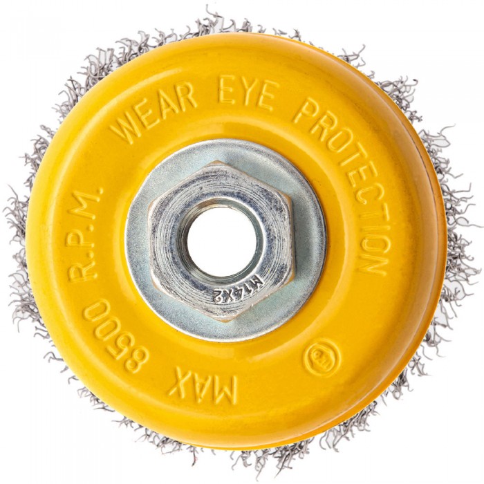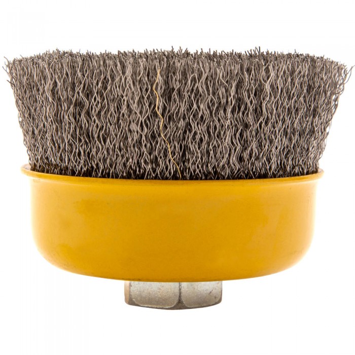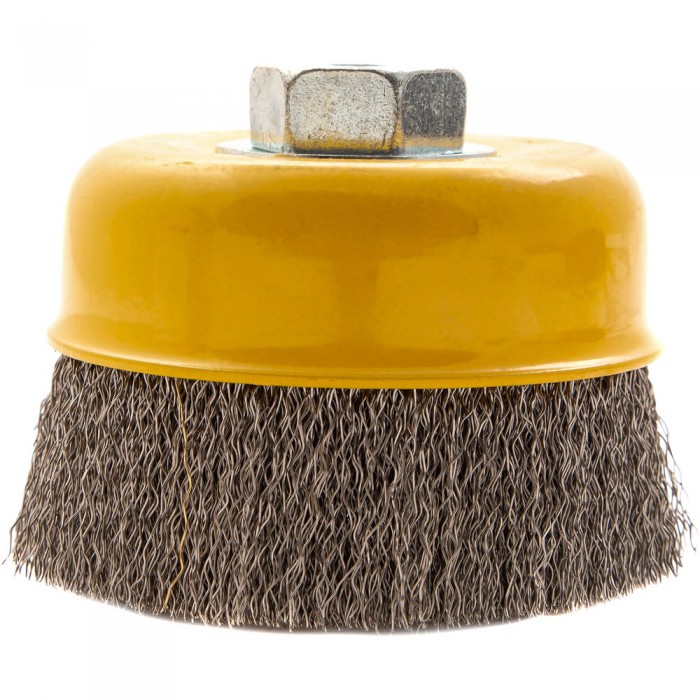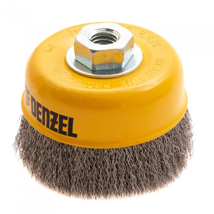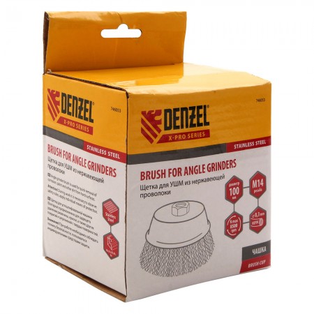 Щетка для УШМ, 100 мм, "Чашка", витая нержавеющая проволока 0.3 мм, М14 Denzel (746053)