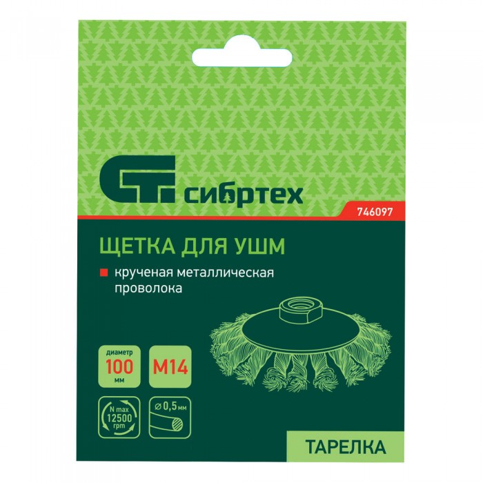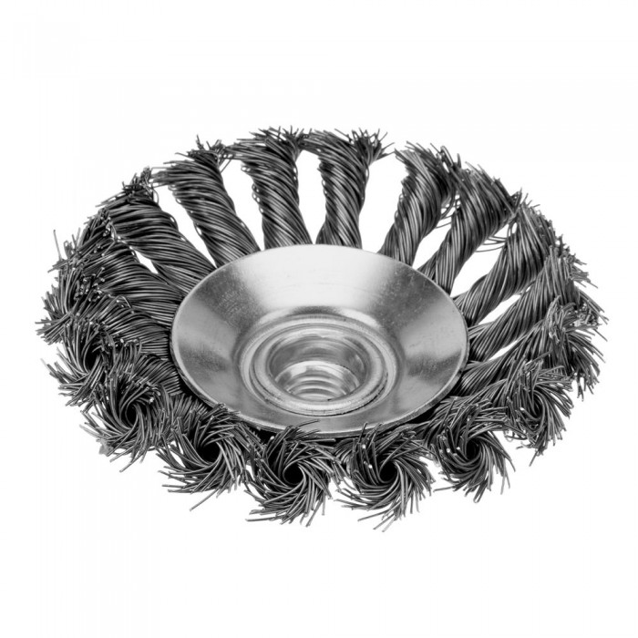 Щетка для УШМ, 100 мм, М14, "тарелка", крученая металлическая проволока Сибртех (746097)
