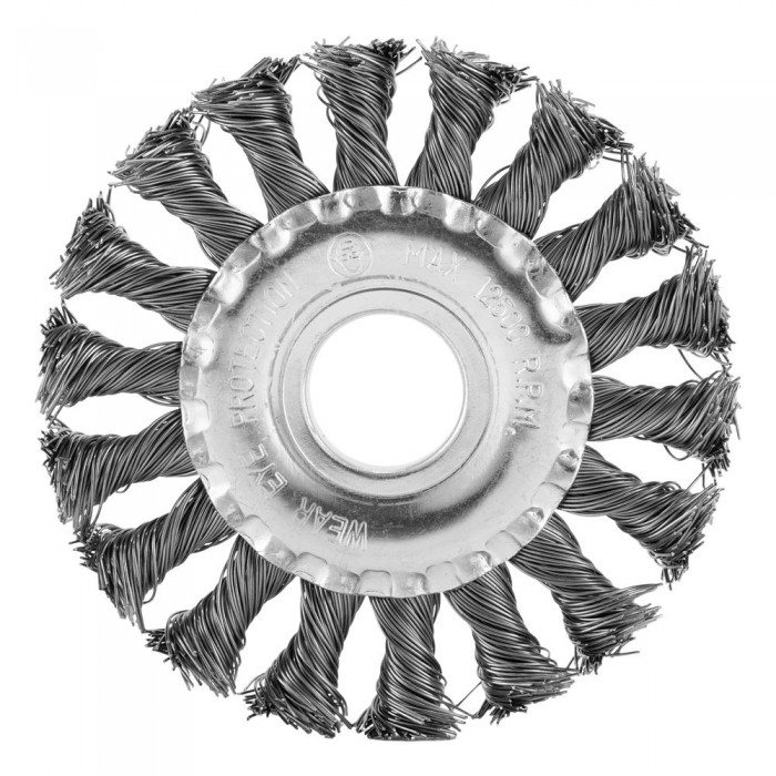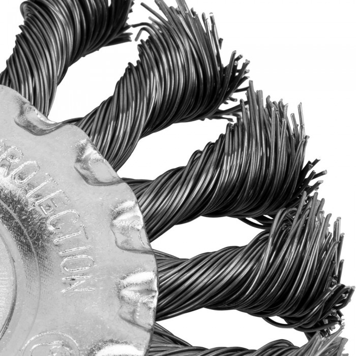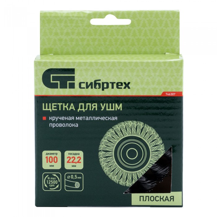 Щетка для УШМ, 100 мм, посадка 22.2 мм, плоская, крученая проволока 0.5 мм Сибртех (746307)