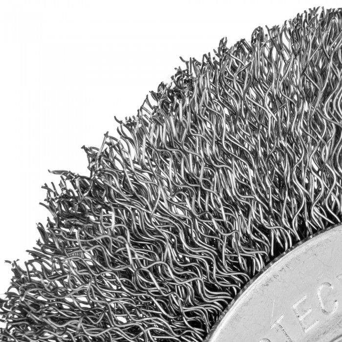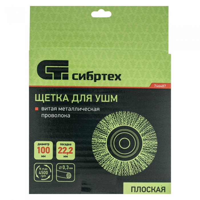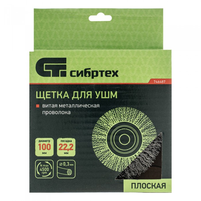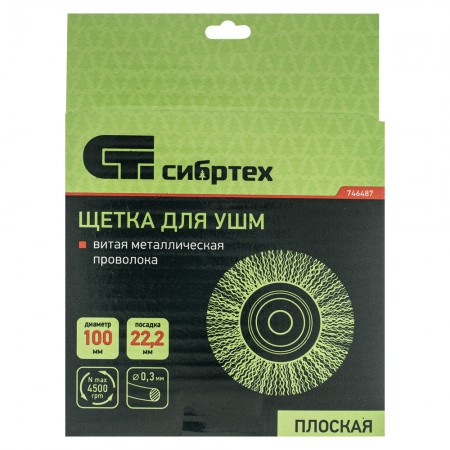 Щетка для УШМ, 100 мм, посадка 22.2 мм, плоская, витая проволока 0.3 мм Сибртех (746487)