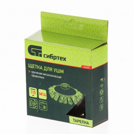 Щетка для УШМ, 115 мм, М14, "тарелка", крученая проволока 0.5 мм Сибртех (746107)