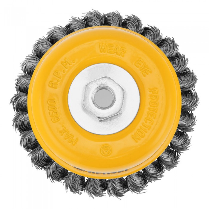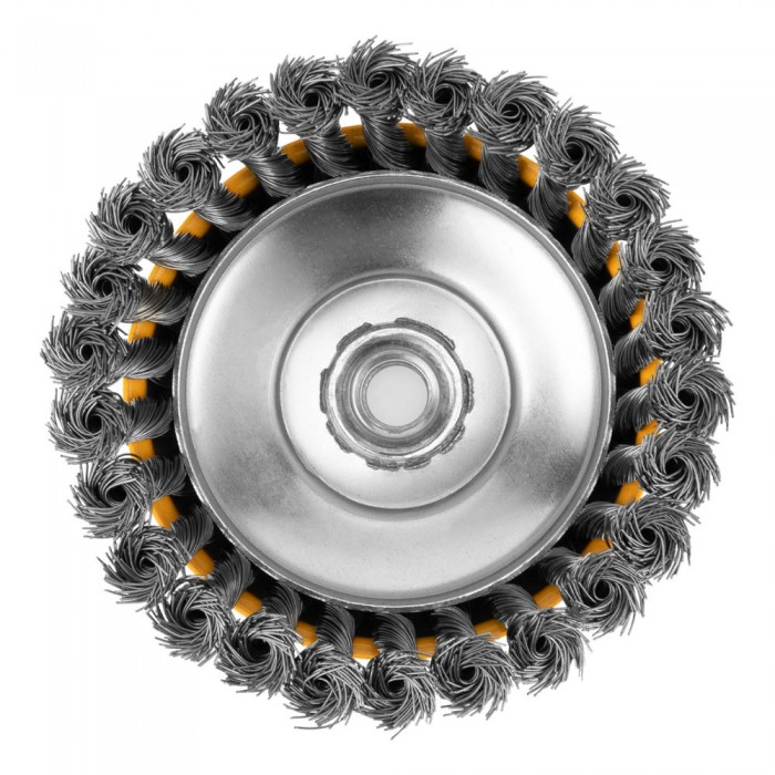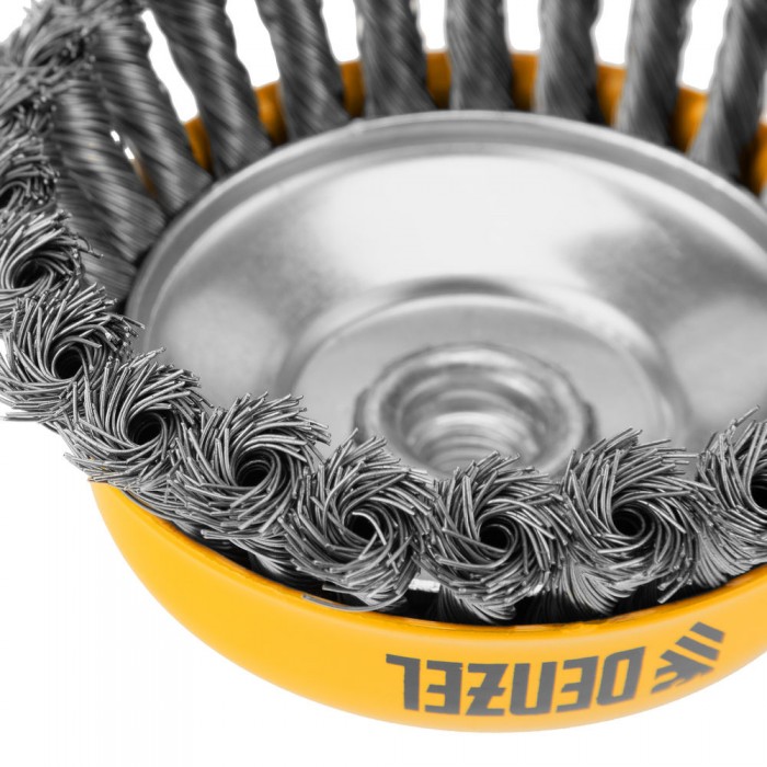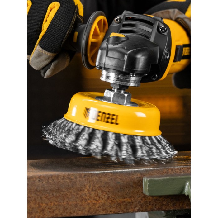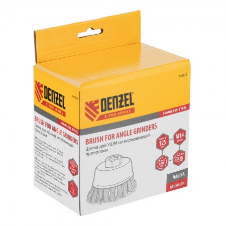 Щетка для УШМ, 125 мм, "Чашка", крученая нержавеющая проволока 0.5 мм, М14 Denzel (746273)