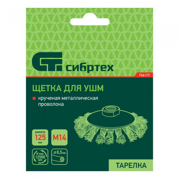 Щетка для УШМ, 125 мм, М14, "тарелка", крученая металлическая проволока Сибртех (746117)