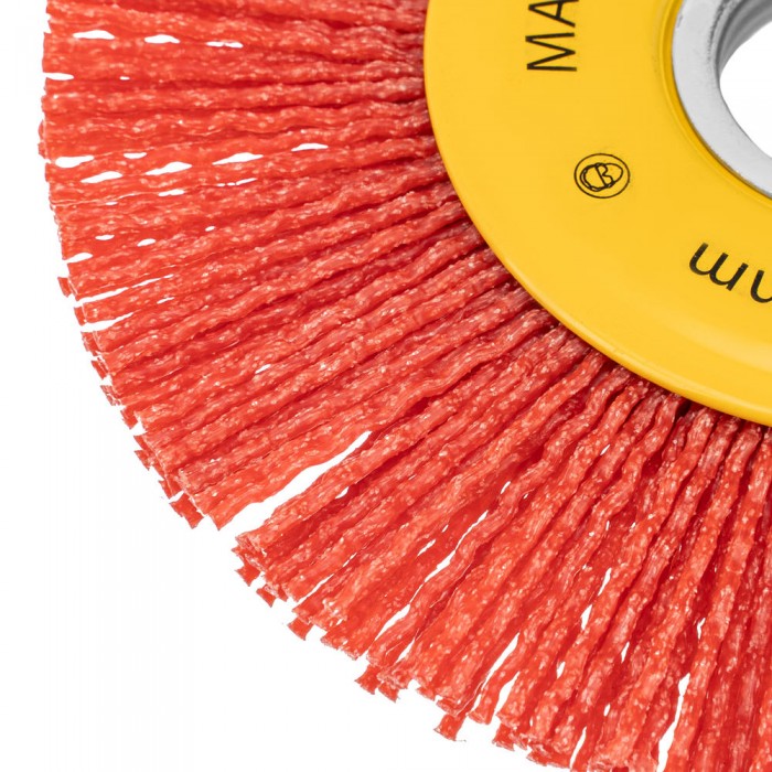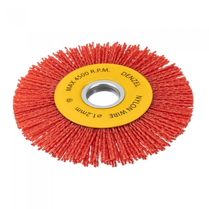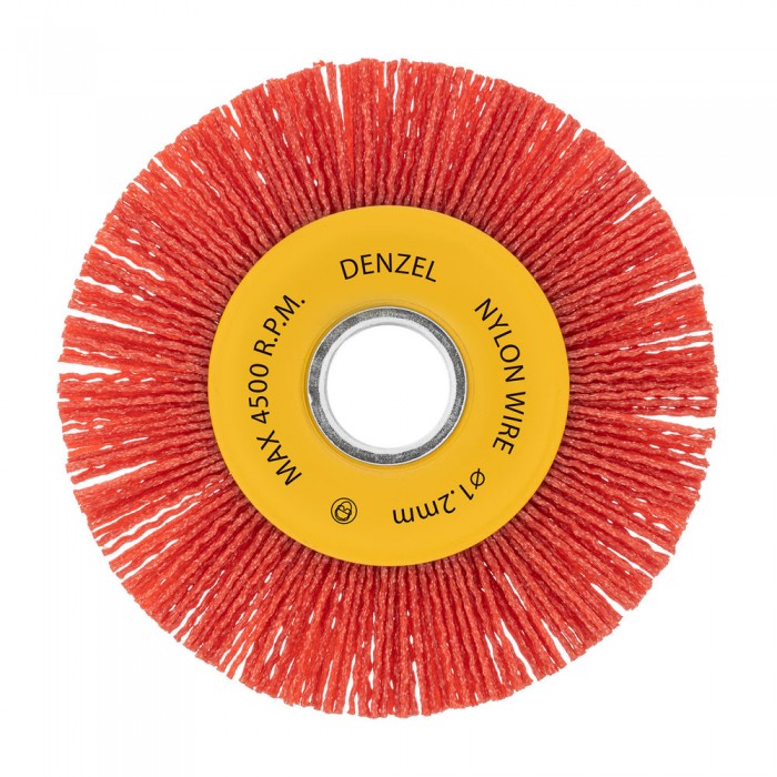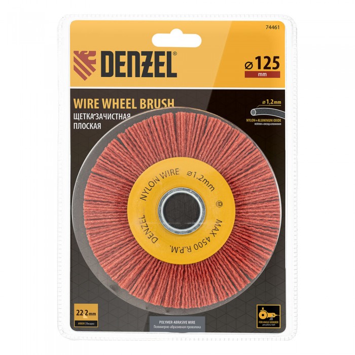 Щетка для УШМ, 125 мм, Плоская, нейлоновая щетина, посадка 22,2 мм Denzel (74461)