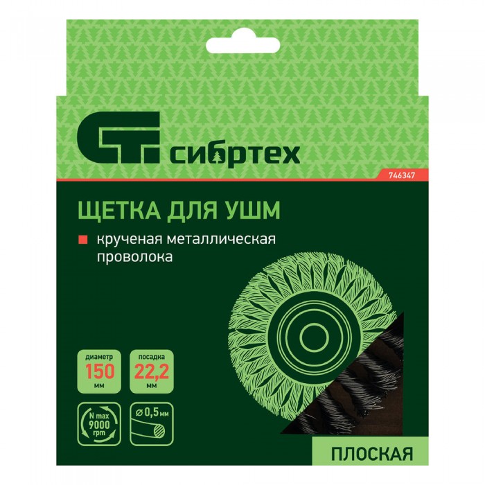 Щетка для УШМ 150 мм, посадка 22.2 мм, плоская, крученая металлическая проволока Сибртех (746347)