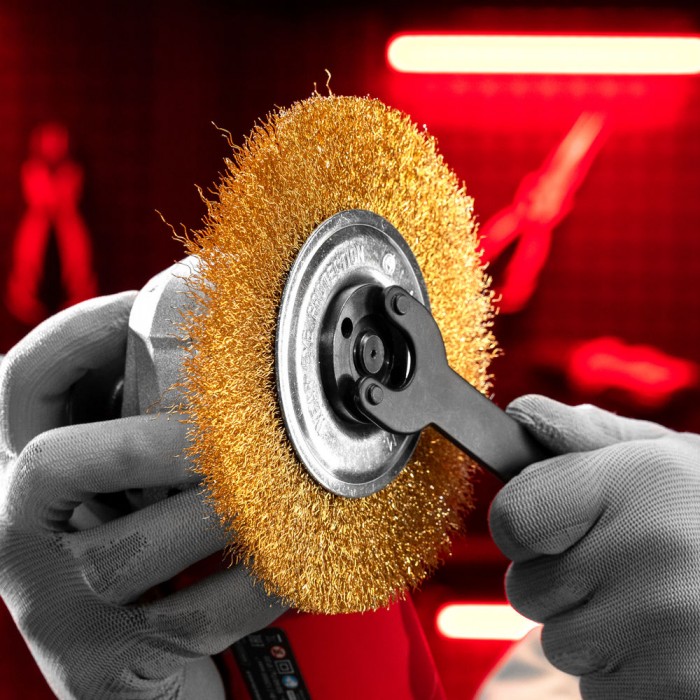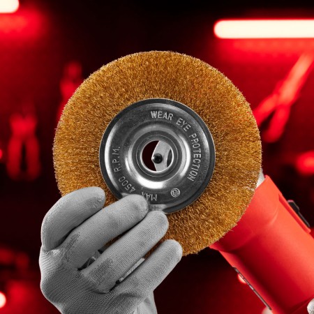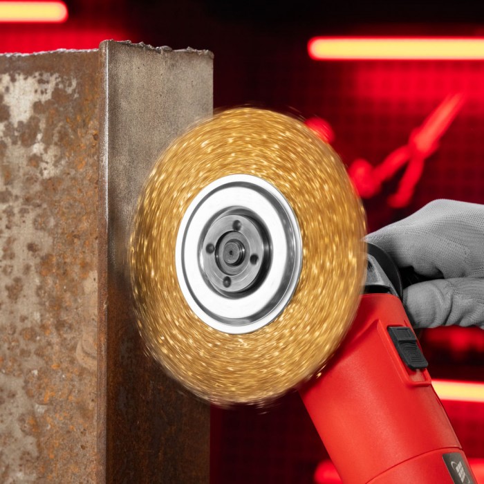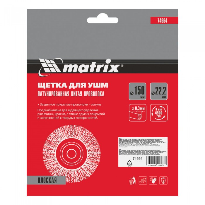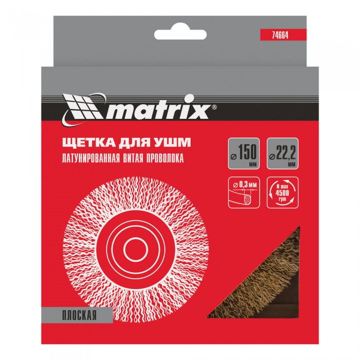 Щетка для УШМ, 150 мм, посадка 22.2 мм, плоская, латунированная витая проволока Matrix (74664)