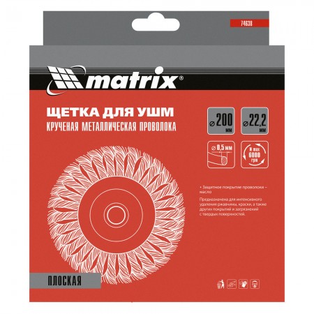 Щетка для УШМ 200 мм, посадка 22.2 мм, плоская, крученая проволока 0.5 мм Matrix (74638)