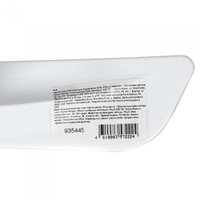 Щетка пластмассовая для подметания пола, 27 см, c черенком, 120 см, бирюзовая щетина, Home Palisad (935445)